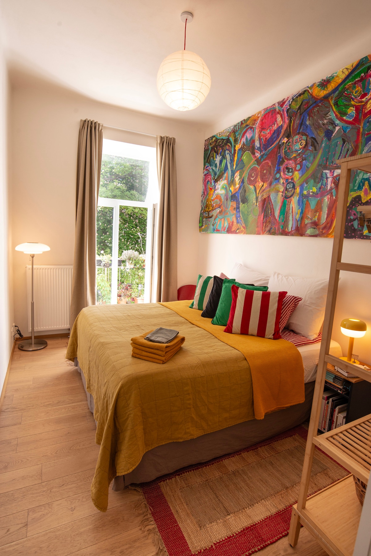 Step into this stylish, tastefully decorated apartment within a beautifully remodeled 1892 house, blending modern comfort with vintage charm. Bathed in natural light, the spacious interior invites you to unwind on a large sofa in the expansive living room, perfect for relaxing after a day of exploring. Bedroom has comfortable King size bed and spacious wardrobe. Big living room/lounge area is combined with kitchen and has large dining table. We will do our utmost for you to be delighted!