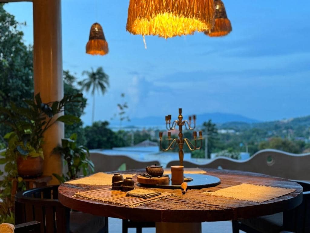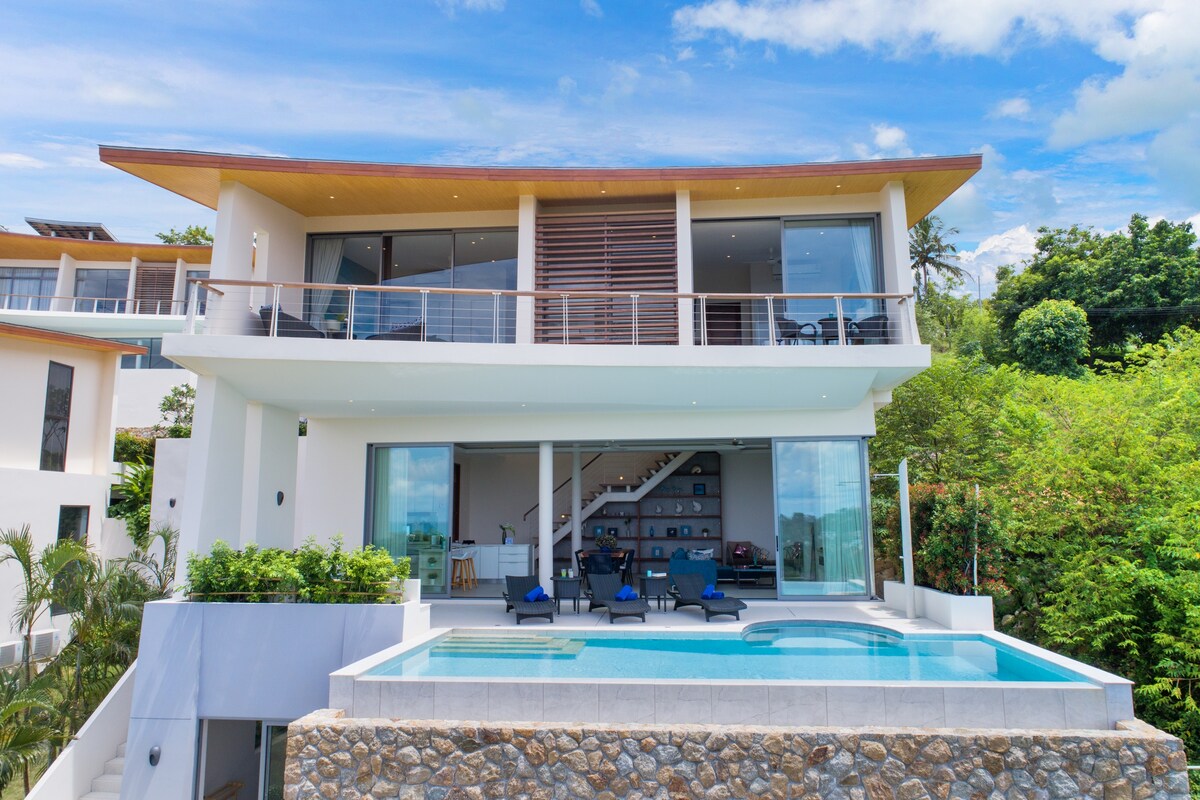 NEW ! PROFITEZ DU TARIF SPECIAL OUVERTURE ! 😀 La villa THE TERRACE, SUPERHOST AIRBNB⭐⭐⭐⭐⭐, est dotée de 2 grandes chambres en suites vue mer et d'une piscine à débordement privée ! Idéalement située sur la colline à Bophut, près du fameux Fisherman Village, sa TERRASSE OFFRE UNE VUE EXCEPTIONNELLE SURPLOMBANT LA MER ! Très moderne et lumineuse, la villa est parfaitement équipée et peut idéalement accueillir 1, 2 couples d'adultes ou une famille de 4 personnes. Petit déjeuner non inclus.