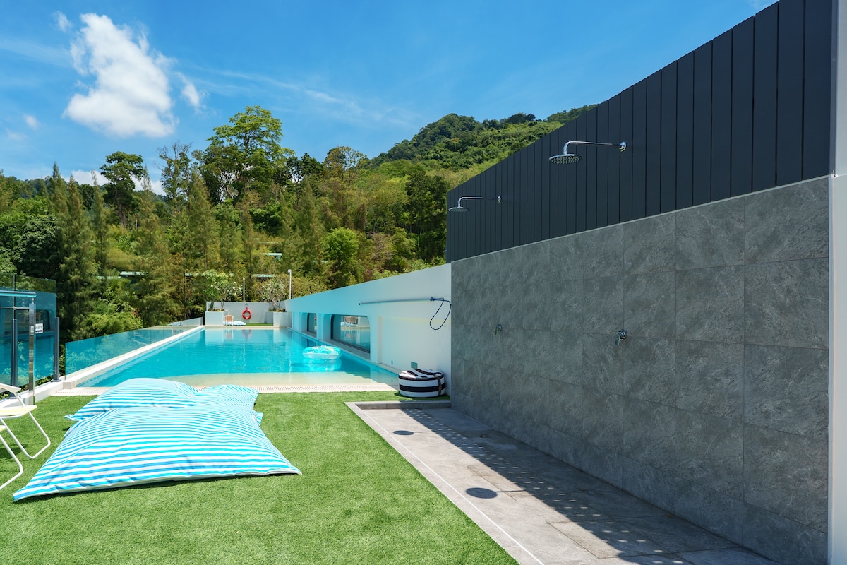 Wake up to lush mountain views through floor-to-ceiling glass in this bright Surin Beach studio, just 650 m from the sand. After a day at the beach or exploring the island, float in the rooftop pool with a sea panorama, hit the gym, or focus in the co-working hub. Your private nest offers two whisper-quiet air-conditioners, a king bed, blackout drapes, large Smart TV, 500 Mbps Wi-Fi, full kitchenette and washer. Smart-lock self check-in; water & electricity included.