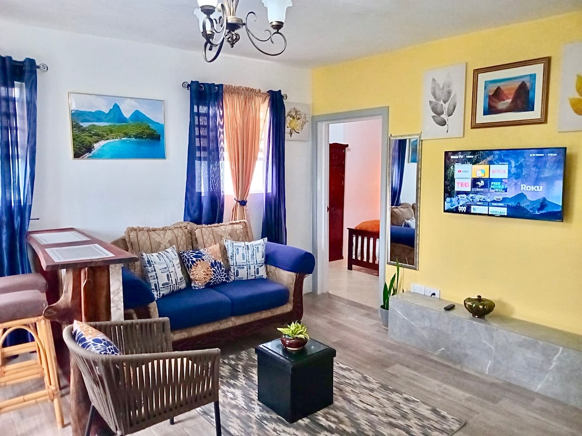 DESIRED VIEW, make peace with the ocean. one-bedroom, one-bath turtle theme apartment, this unit can sleep 4 guests with an addition queen bed set up. spacious, beautiful large pool, outdoor grilling entertainment, daily activities; scuba diving, fishing, mud baths at the Sulphur Springs, Tet Paul trail, hiking up the Pitons. wake up to daily island cooked room served breakfast included every morning. car rentals, airport pickups and drop offs also available.