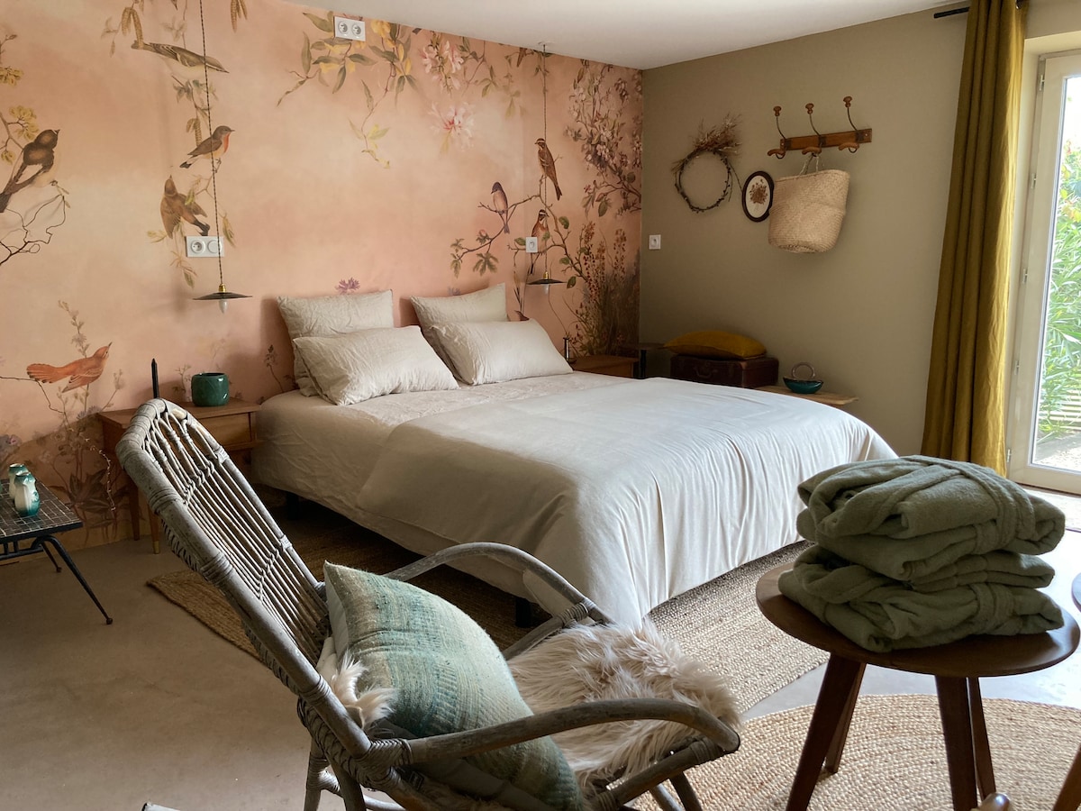 Dans une ambiance chaleureuse vous séjournerez dans un espace indépendant entièrement équipé avec salle de bain et toilette privative . Notre chambre d'hôte située à 8 mn du Puy du Fou, vous permettra de bénéficier d'une vue et accès direct à un jardin verdoyant ou à la piscine si vous le souhaitez. Au choix vous pourrez prendre votre petit déjeuné dans une pièce dédiée attenante à la chambre ou sur la terrasse bois de votre chambre. A proximité tous commerces, restaurants et centre commerciaux.