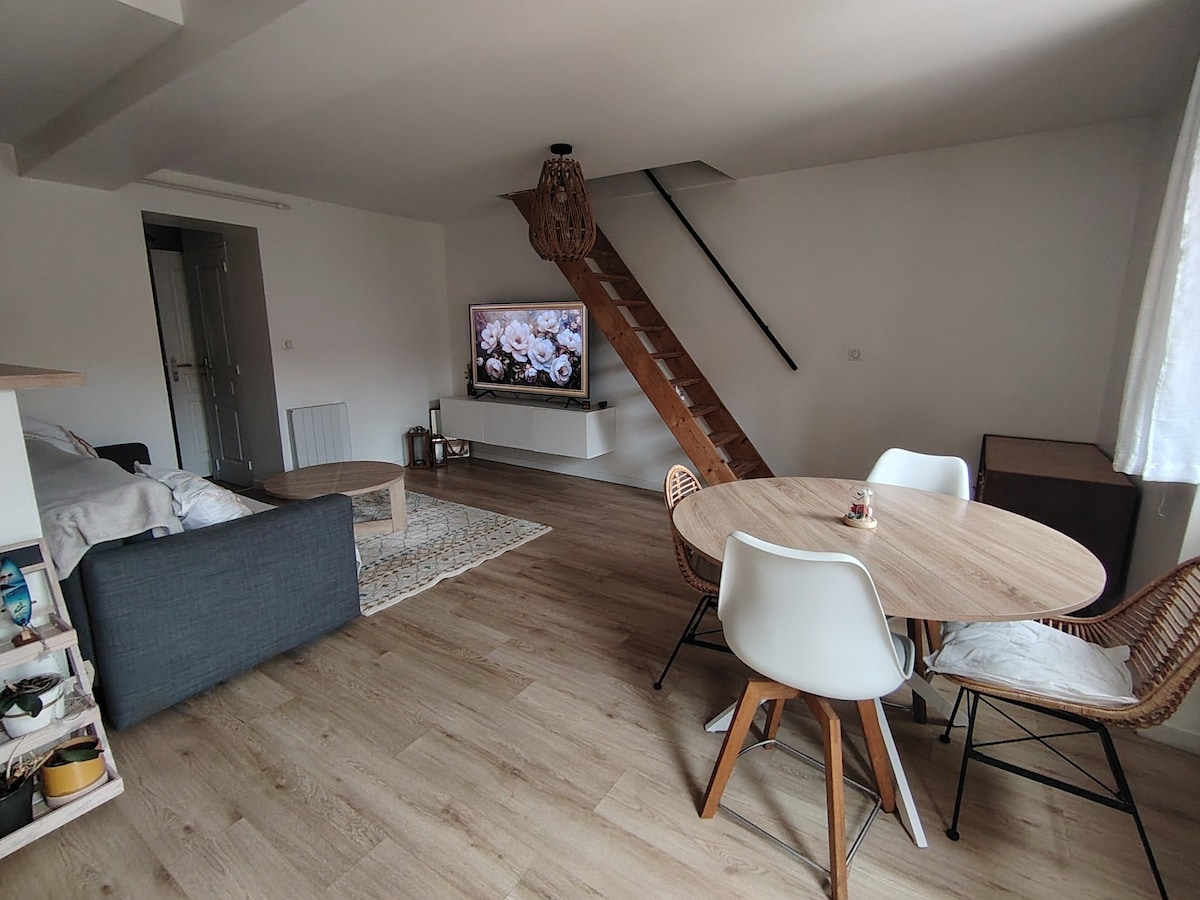 Chez l'habitant vous trouverez un Souplex type F2 (40m2) avec terrasse et jardin privatif proche centre- ville (10 min à pied) et des commerces. Situé à -15 min à pied de la gare -Vous séjournerez à 7 min du musée du textile et de la mode (véritable mémoire d’un territoire marqué par l’activité du textile) - 15 min du musée des métiers de la chaussure - 15 min parc orientale de Maulévrier - 25 min du Puy du Fou -25 min du château de Barbe Bleu -