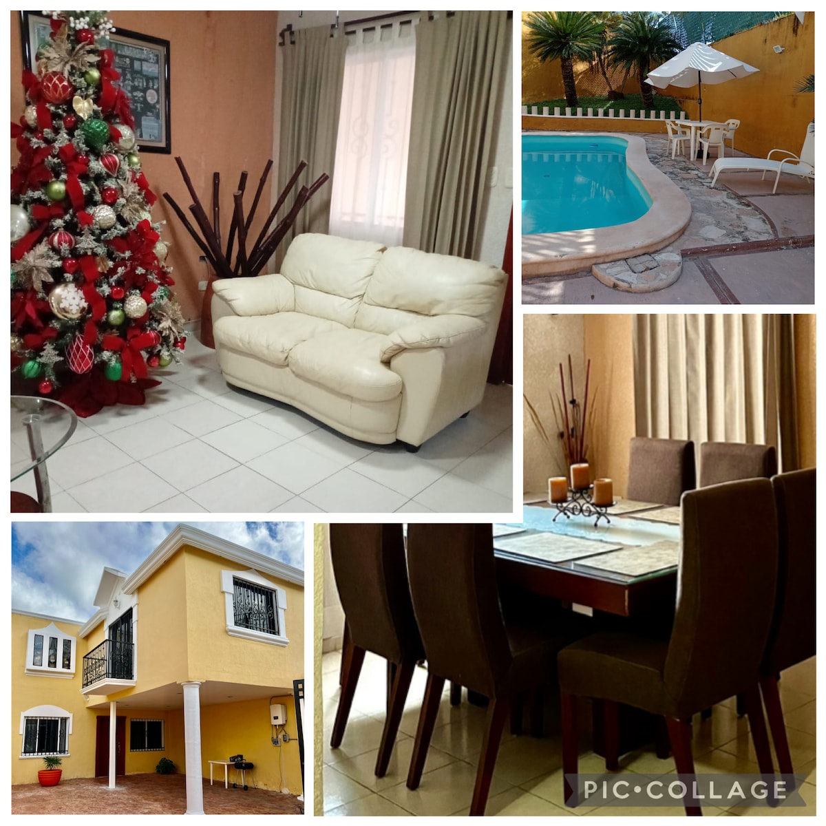 Moderna casa totalmente equipada para disfrutar su estancia al máximo. Tiene aires acondicionados tanto en las habitaciones como en la sala/comedor. Si usted viene en plan de trabajo a distancia, usted tiene el ambiente para poder hacerlo; en las habitaciones de planta alta hay escritorios para hacerlo, pero también los muebles de la sala, cocina y terraza son cómodos para trabajar en una laptop. El internet llega a todos los espacios de la casa inclusive al patio. Le encantará!!