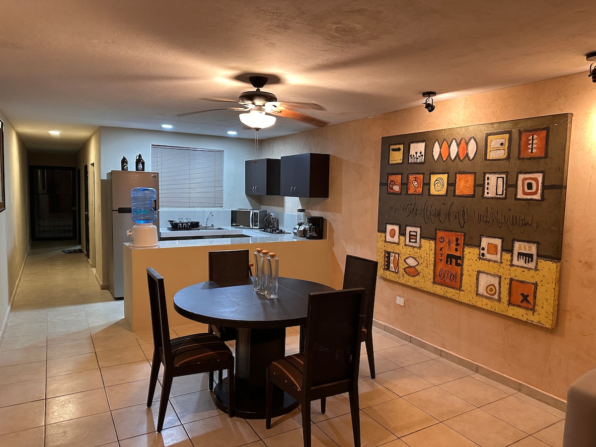 We welcome you to "Makou Apartments" a building with a unique architecture, full of vegetation and atmosphere of harmony and peace. The location is unbeatable, one block from Av. García Lavín, you will have easy access to shopping centers, super markets, hospitals, restaurants, bars and especially to the main avenues of the north. The apartment has all the services, swimming pool, excellent internet and private parking, as well as a private bar with service ready to serve you.