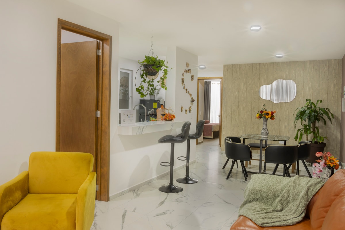 Gorgeous two bedroom two bathroom apartment, completely remodeled, only three blocks from the Cathedral and four blocks from the historic Zocalo in the heart of downtown Puebla. You'll find many beautiful museums, excellent restaurants, and even a hop-on hop-off tour bus to take you to all the sights, including Cholula and the pyramid. The area is very safe and walkable and Uber is also readily available.