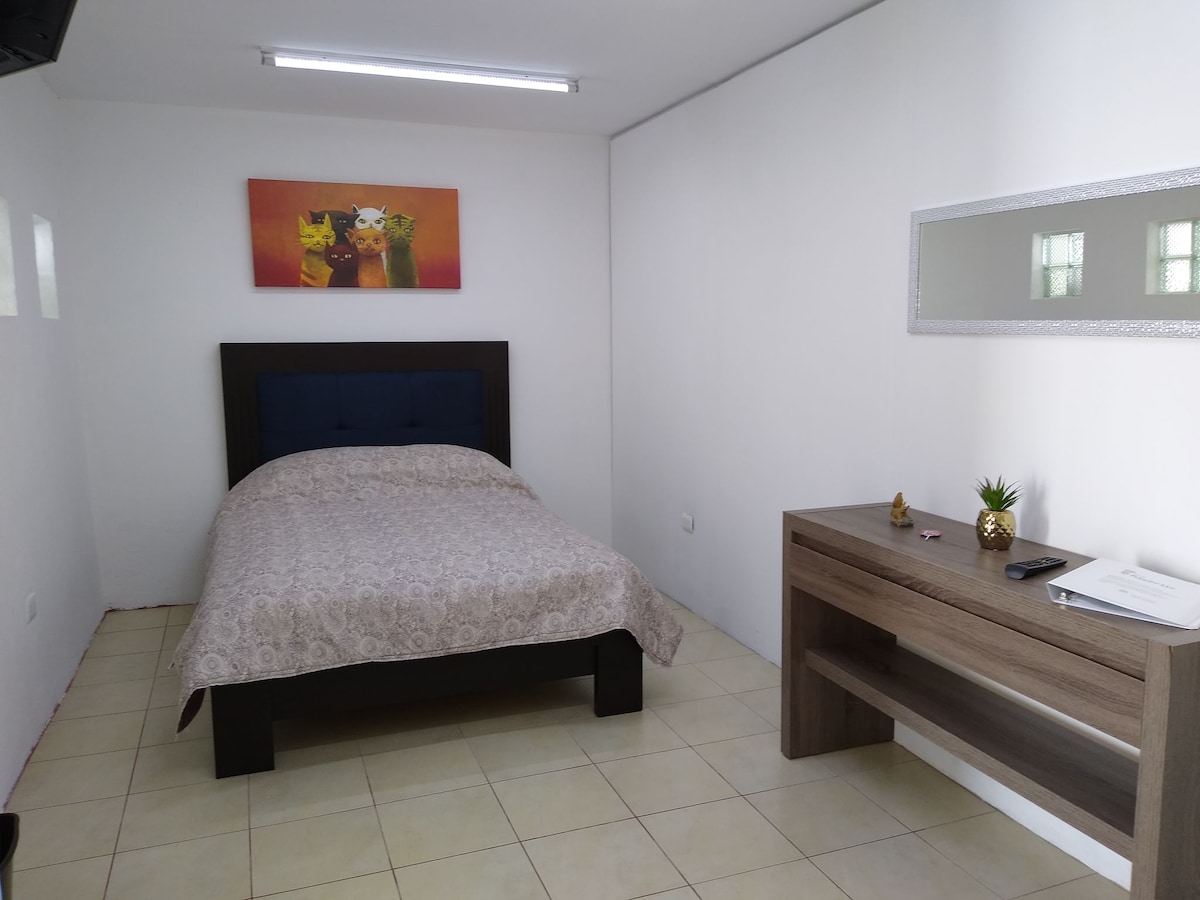 Cómoda estancia para hospedarte en Puebla. Nos encontramos a un costado del Hospital la Beneficencia Española 2 km de zócalo de Puebla 300 m de la Av Juárez 300 m del museo del Ferrocarril 100 m de Oxxo Hay estacionamientos y pensiones públicas a cuadra y media del alojamiento. Lugar ideal para viajeros, trabajadores, estudiantes o turistas. Depende el número de personas es el precio. Cupo máximo 2 personas.