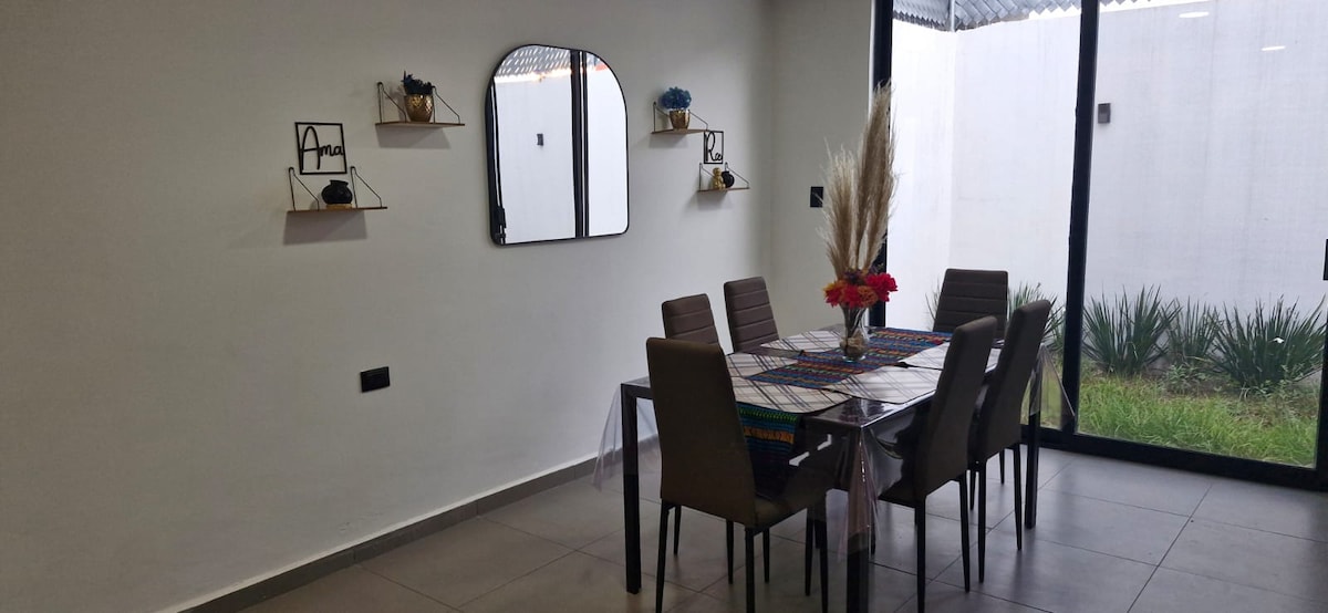 Beautiful house in a residential area with a country atmosphere. Very spacious, illuminated and in total privacy. Located very close to Cerro Zapotecas, a beautiful place ideal for practicing mountain biking and walking with pets. It has a beautiful garden with fruit trees, a grill oven, two garden furniture, sun umbrellas, as well as two terraces, one of them panoramic with a beautiful view of the Popo. Driveway for 5 cars 100% PET FRIENDLY 5 min. by car from the center