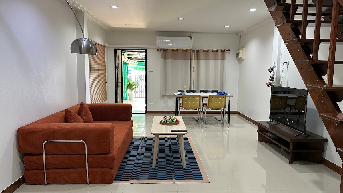 Fully furnished - ready to move in - villa style duplex - right next to the beach. Best for four members family, students, and couple escape. Equipped with private pool, 20m pool, gym, security door, resturant. Locate on the main road - 6km to Bangsan beach; 5km to University. Lastest renovation: November 2022 High speed wifi upgrade: Jan 2023 Piping fixed: Feb 2023