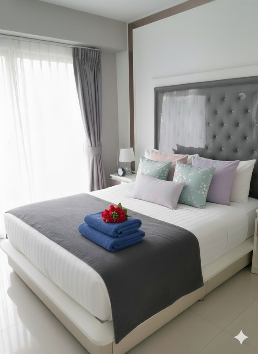 Our place is close to a department store, Park-in Night Market, and Toshin Japanese Market — two of the most popular markets right now. There are also many trendy bars and restaurants nearby. 7-11 just around the corner, and there’s also a 7-Eleven vending machine on the first floor. Bang Saen Beach is not far, perfect for a quick seaside escape. We use premium pillows and bedding to make sure your stay is as comfortable as possible. We hope you’ll find it even cozier than other places.