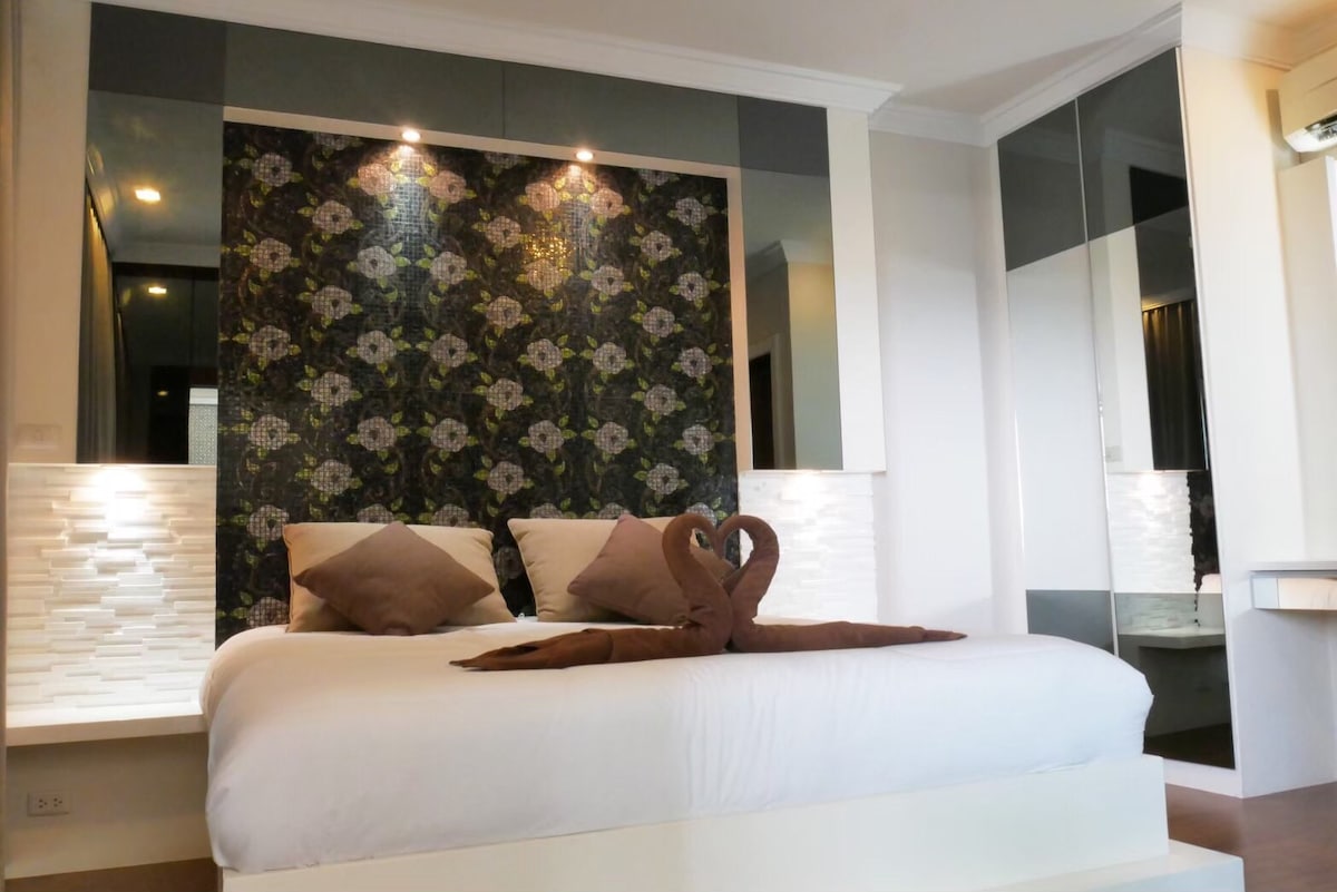 平均评分 5 分(满分 5 分),共 9 条评价独家花园景观套房厨房+无线网络@ Bangsaen