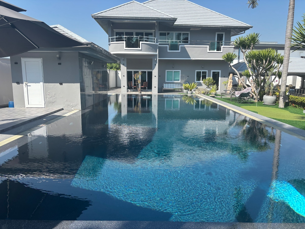 芭提雅中天海滩附近超豪华超大独栋4卧5卫泳池别墅Q2(可提供漂浮早餐和BBQ服务,需另付费)