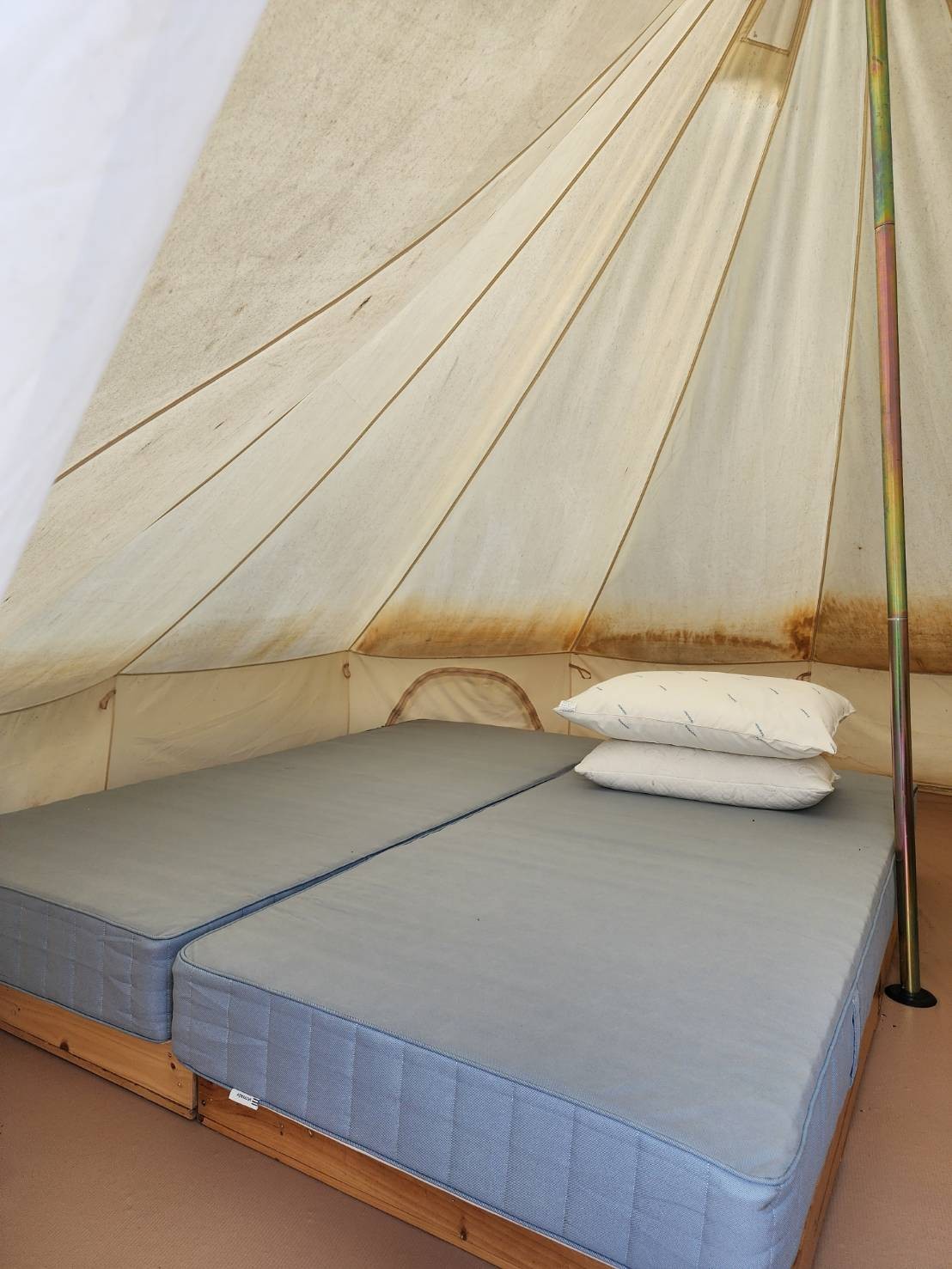 ที่พักสไตล์แคมป์ปิ้งติดแอร์ ที่นอนอย่างดีหมอนขนห่าน พร้อมห้องน้ำส่วนตัว