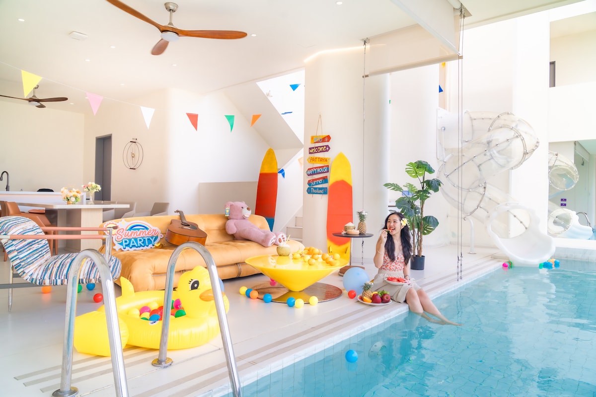 Situated near the beach, this ultimate resort house ensures a memorable trip to Pattaya that you'll cherish for years. Conveniently located next to Columbia Pictures Aquaverse (formerly Cartoon Network Waterpark) and just a 20-minute drive to South Pattaya, this luxurious retreat offers an oasis of relaxation with your very own private, shaded swimming pool.