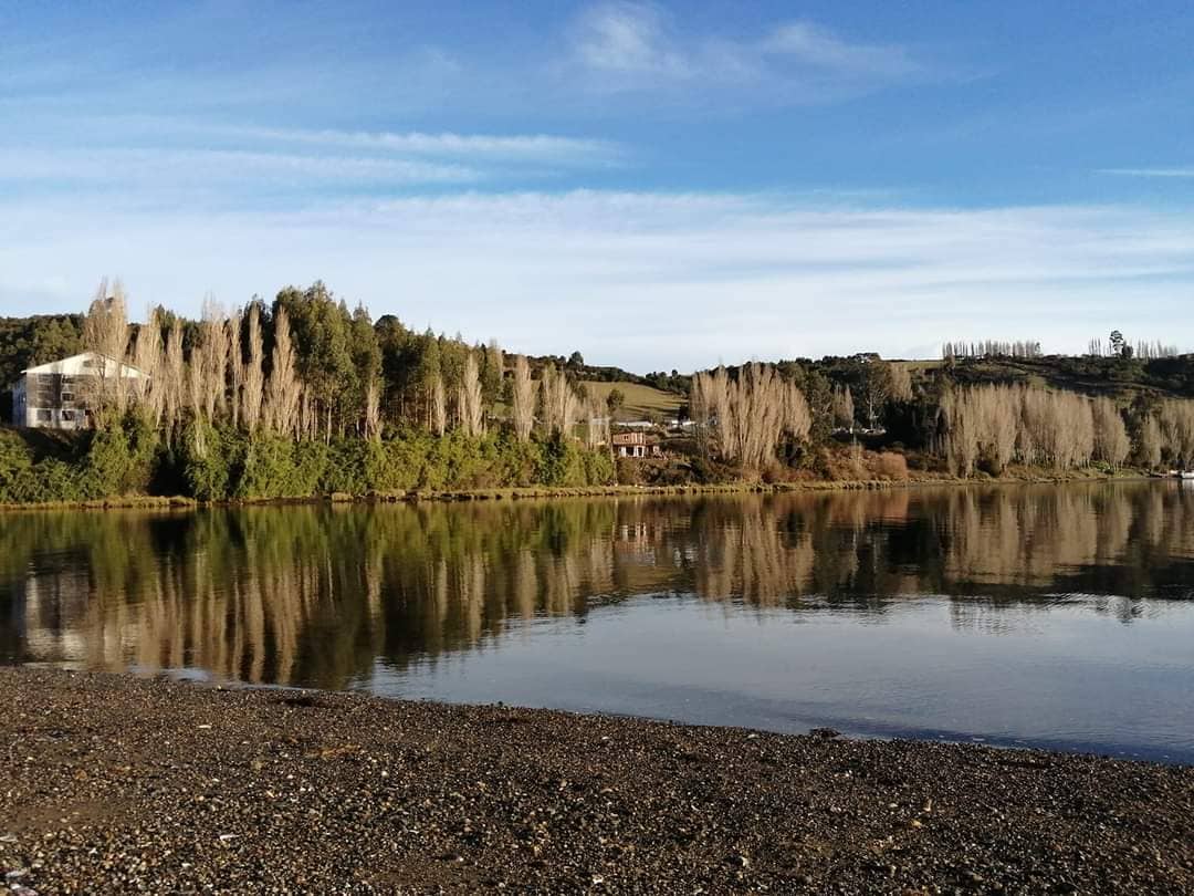 Chiloé. Casa al borde del lago Huillinco. Cuenta con dos habitaciones, sala comedor y terraza con vista al lago Huillinco. La calefacción es a leña, baño y cocina completos. Lago Huillinco, estrecho Contento, playa apta para nadar, pescar y hacer kayac.