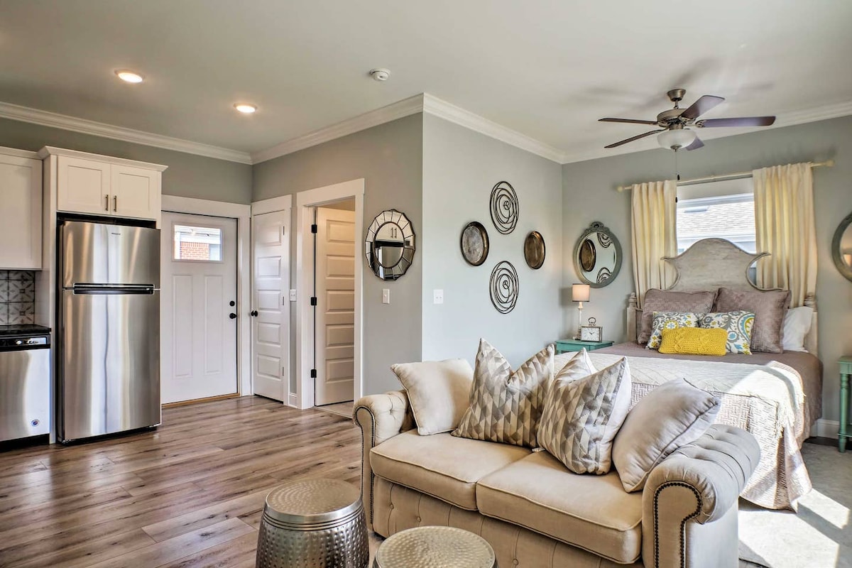Southside and adjacent to the renowned Sculpture Fields at Montague Park, a 33-acre outdoor art museum! Close to everything, making it easy to plan your Chattanooga getaway! Queen bed en-suite with a desk, private laundry, kitchenette and garage to store your bikes, kayaks, etc. Great location right off of Main Street, and close to downtown, the river & convention center. -Smart TV -Coffee & Sugar -Fridge -Air Fryer -Microwave -Dishes -Blackout Curtains -Ceiling Fan - Early/Late Check-In Option