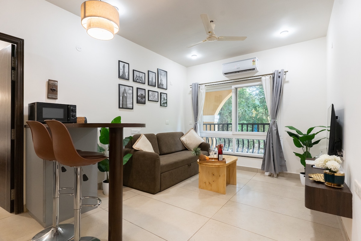 ✨🌴 Welcome Home! at Apartment Blanco - 234 ! 🏖️🌊 ✨ What You’ll Love ✨ ✅ Located in Arpora - Anjuna Road (Acron Sea Winds) 📍 900 m – Baga Beach 📍 3 km – Anjuna Beach 📍 4 km – Vagator Beach ✅ Penthouse size : 810.74Sq.Ft ✅ Double-Height Penthouse Ceiling – A Rare & Exceptional Feature ✅ Bluetooth Speakers & Board Game ✅ Romantic Wrap Around Balcony with field view ✅ 1 Dedicated Parkin ✅ 24 x 7 Security ✅ Complimentary housekeeping ✅ 2 Olympic Size Pools & 1 Baby Pool / Gym / Sauna