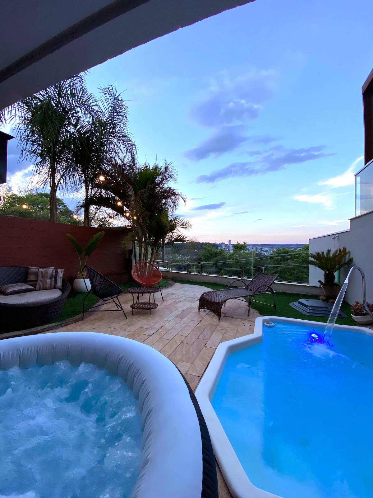 Experimente um loft com vista panorâmica incrível da cidade, ideal pra relaxar com conforto e privacidade. O espaço conta com piscina exclusiva, jacuzzi aquecida, churrasqueira, mesa de sinuca, cama de casal e sofá-cama. Há também garagem coberta no local para sua comodidade. A entrada é independente, oferecendo total privacidade aos hóspedes. A parte superior é residencial, mas não há áreas compartilhadas. 🚫 Acesso restrito apenas a hóspedes registrados. 🛁 Toalhas de banho não incluídas.