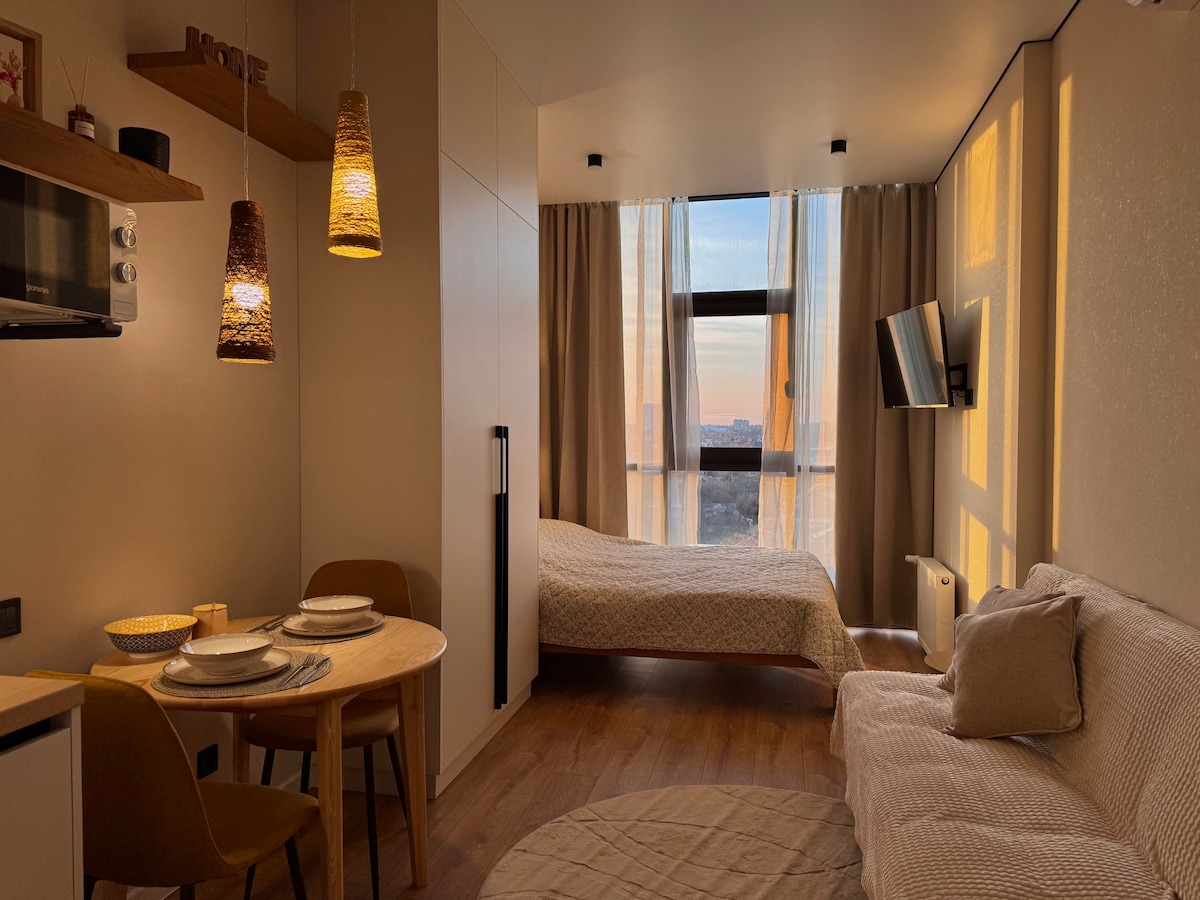 🏙️ Located on the 19st floor of a 25-story building. 🕓 Check-in anytime, 24 hours a day! No worries if you arrive late at night 🌙 ❗ All bedding is professionally cleaned in a dry cleaner! ❗ Indoor Shelter! (Undeground Parking) 💰 Included in the price: 🛏️ Comfortable Stripe Satin bed linen 🍽️ All dishes and kitchen utensils 🩴 Disposable slippers 🧼 Soap and shower gel 🌐 High-speed Wi-Fi internet ☕️ Espresso coffee machine + coffee 🍵 Tea assortment in sachets