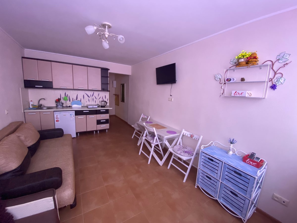 The apartment is duplex in loft style is located in 3-floor building on the 3-d floor WITHOUT ELEVATOR. The first level of the apartment is a spacious kitchen-studio with a double sofa. The SECOND level is a ceiling height of !1.88m!