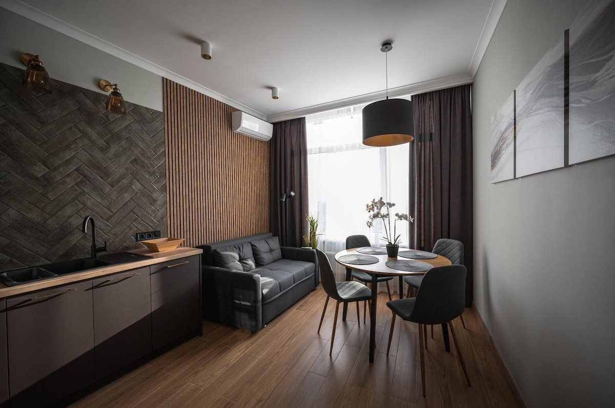 Це унікальне помешкання має власний стиль. Відпочиньте й розслабтеся в затишній і стильній оселі. Наше помешкання створене для комфортного відпочинку. Воно розташоване у новому будинку з сучасним інтер’єром, швидким Wi-Fi, кондиціонером і рециркулятором повітря, та стильною ванною кімнатою, з феном і електричною сушкою для рушників. В помешканні великий телевізор 43 дюйми, мікрохвильова піч, чайний комплекс, набір посуду, холодильник з морозильною камерою, халати, ваги.