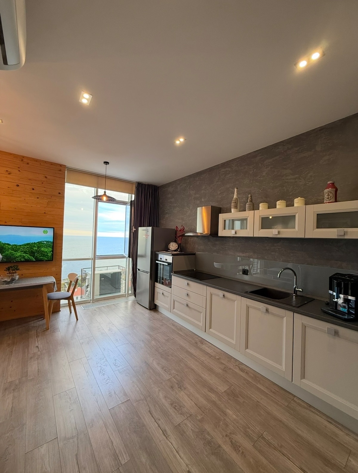 С удовольствием хочу Вам представить апартаменты с великолепным видом на город и на море. В апартаментах есть все для комфортного отдыха 3-4 персон. Большая кровать и большой раскладной диван. Апартаменты расположены в центре города. B уютном дворе автостоянка и сквер. Mагазины, базары, кафе и рестораны в шаговой доступности. Городской пляж в 10 минутах ходьбы.