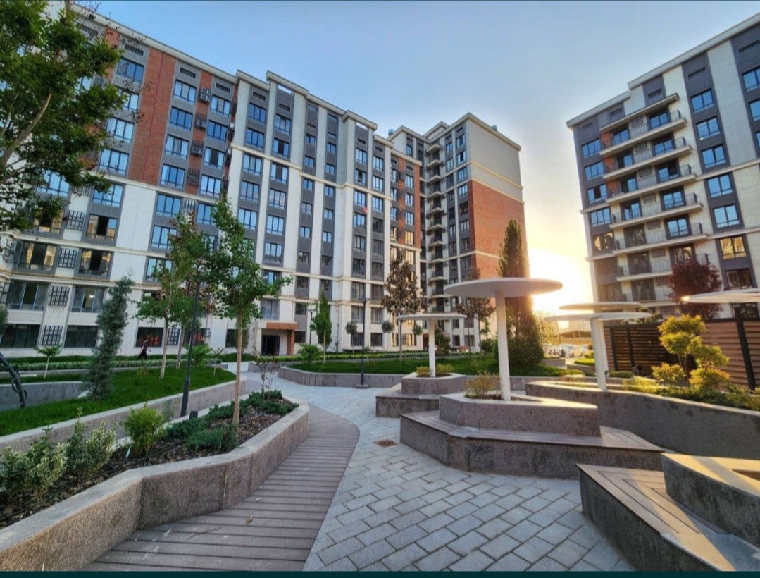Квартира находятся в Новом жилом комплексе "Карасарой". Жилой комплекс был построен и сдан в эксплуатацию частично в 2017 году и в 2020 году полностью. В жилом комплексе построено 13 жилых домов. Все дома новые, 7 этажные. Имеются большие лифты с вместимостью до 6 человек. В жилом комплексе также имеются 3 продовольственных магазинов, аптека, кофейня и большой фонтан. Что очень удобно для осуществление мелких покупок, организации завтраков и прогулок по территории не покидая комплекс.