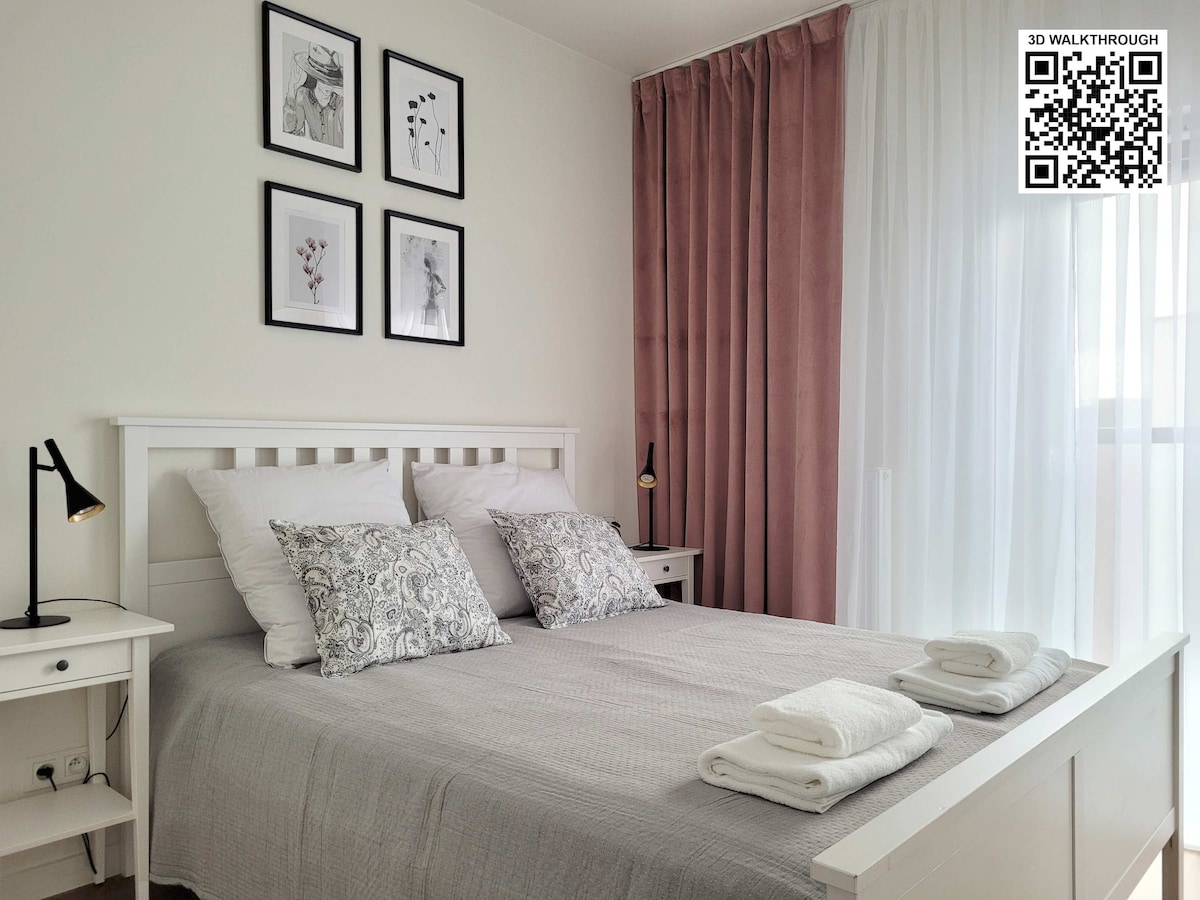 Komfortowy, w pełni wyposażony apartament w nowym budynku. Salon z otwartą kuchnią podzielony na część jadalną i wypoczynkową. W sypialni znajduje się duże łóżko i przestronna szafa. Jest także garderoba jako dodatkowe miejsce do przechowywania. W okolicy znajdują się sklepy, restauracje i kawiarnie Wyposażenie: klimatyzacja, ekspres, czajnik, żelazko, deska do prasowania, pralka Dojazd z Lotniska Chopina 20 min taxi 50 min komunikacja z Lotniska Modlin 50 min taxi 120 min komunikacja