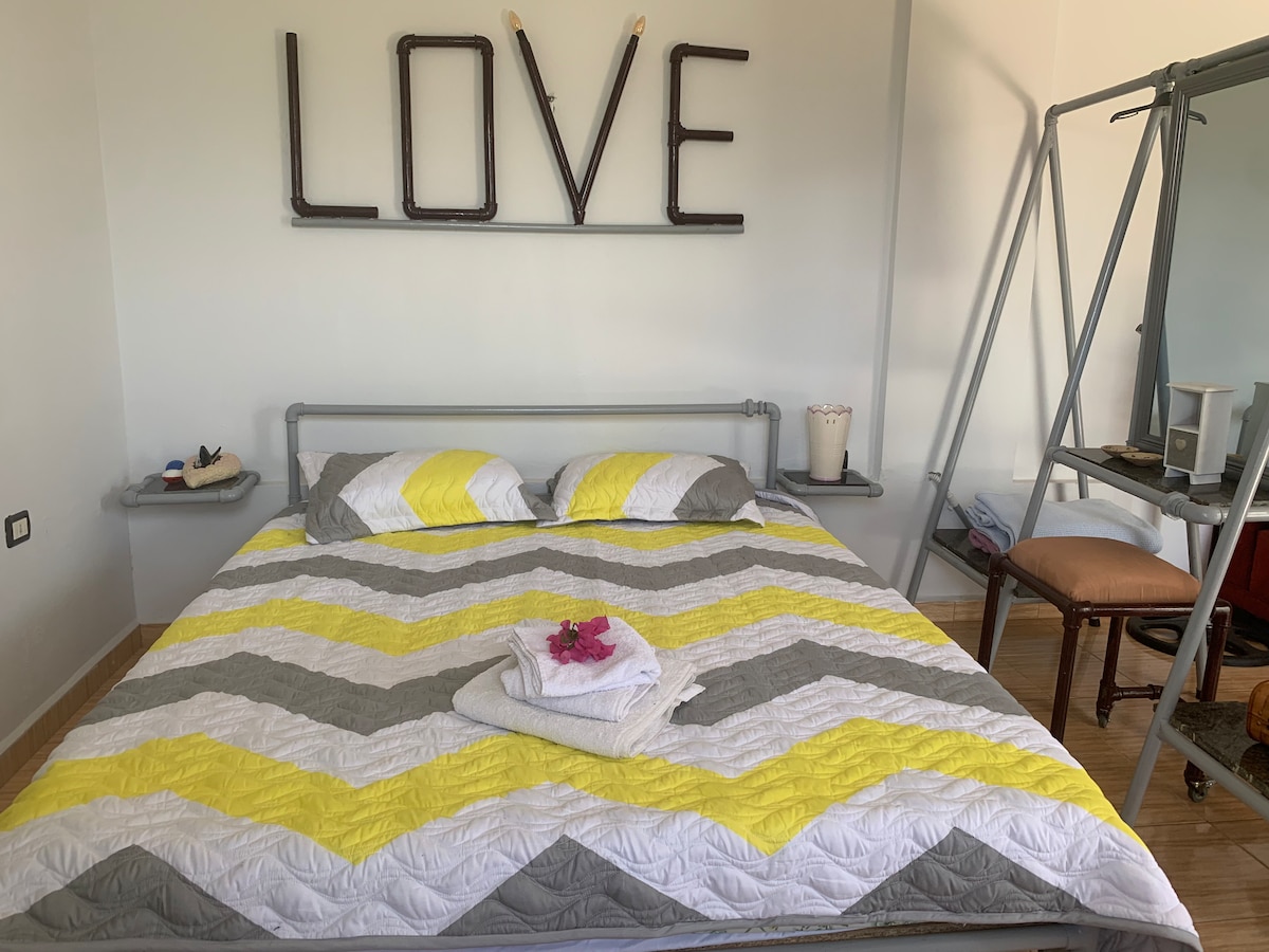 This stylish place (The Mash House-Iron Nest) is an anti stress chalet that gives you the opportunity to relax, embrace nature and serenity with spectacular panoramic view to Bisri river valley and surrounding mountains. Plan your hikes to the famous valley with its historical Roman ruins and vast biodiversity, with more than 15 hike tracks! A outdoor private space of 200m2 is at your disposal, perfect for family gathering. Friends can be invited for barbecues and party! 24 h electrecity, wifi.