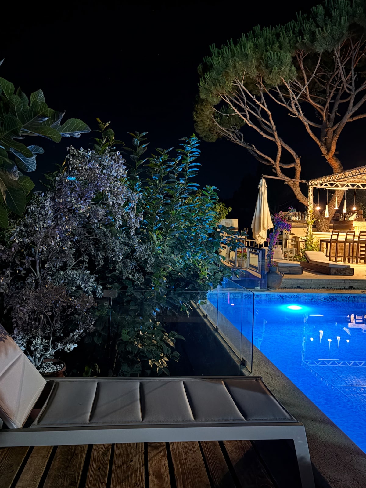 Catalpa Guesthouse is a luxurious and stylish accommodation, featuring the Ovata Suite - an industrial and luxurious masterpiece. It comes with a private indoor pool equipped with a cinematic TV, waterfall and jacuzzi bubbles . The suite is fully automated with a fingerprint door lock and offers breathtaking mountain views during sunset. The outdoor pool and bar area is surrounded by a beautiful garden with organic plants and trees.