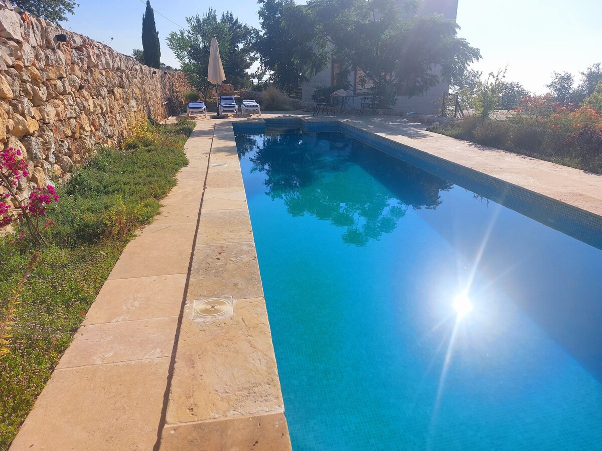 Relax staying at this peaceful place (The Mash House-Vintage chalet). Enjoy hiking in the middle of the nature surrounding Bisri River Valley along with diverse bio ecosystem and historical Roman ruins. With its 1000m2 open space, private nylon pool, your family and friends spend joyful moments with barbecue and kids playing area with multiple toys. Its stargazing panoramic terrace rooftop is a great attraction. For hunting lovers it offers a special experience warmed by a wood chimney.