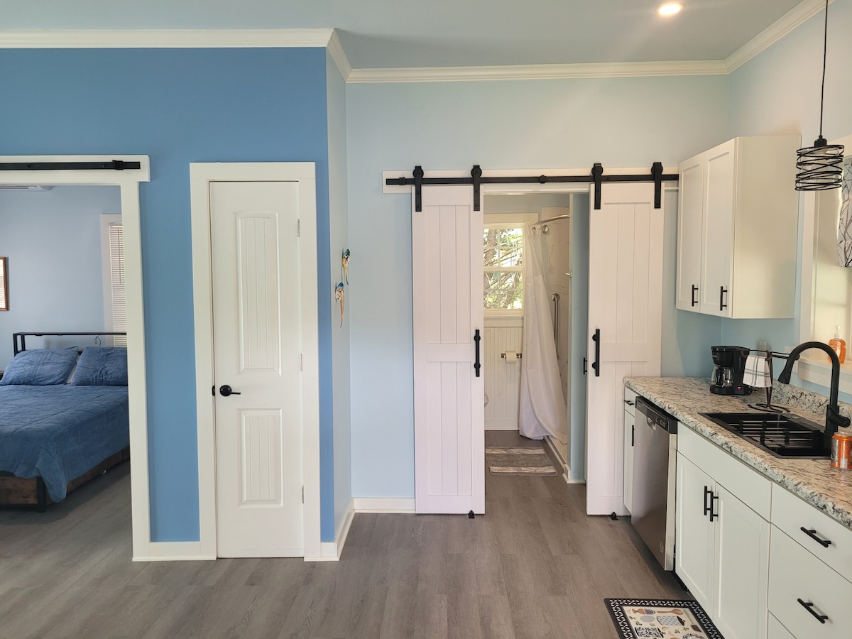 Kick back and relax in this stylish efficiency apartment created in the walkout basement of the beach cottage Take a quick drive to Historic downtown Edenton and enjoy shopping,restaurants, trolley tour, the lighthouse, The Barker House,House and gardens. Spend the day on the water kayaking, fishing or swimming. Enjoy the most amazing sunsets! Host is on premises in a separate private space