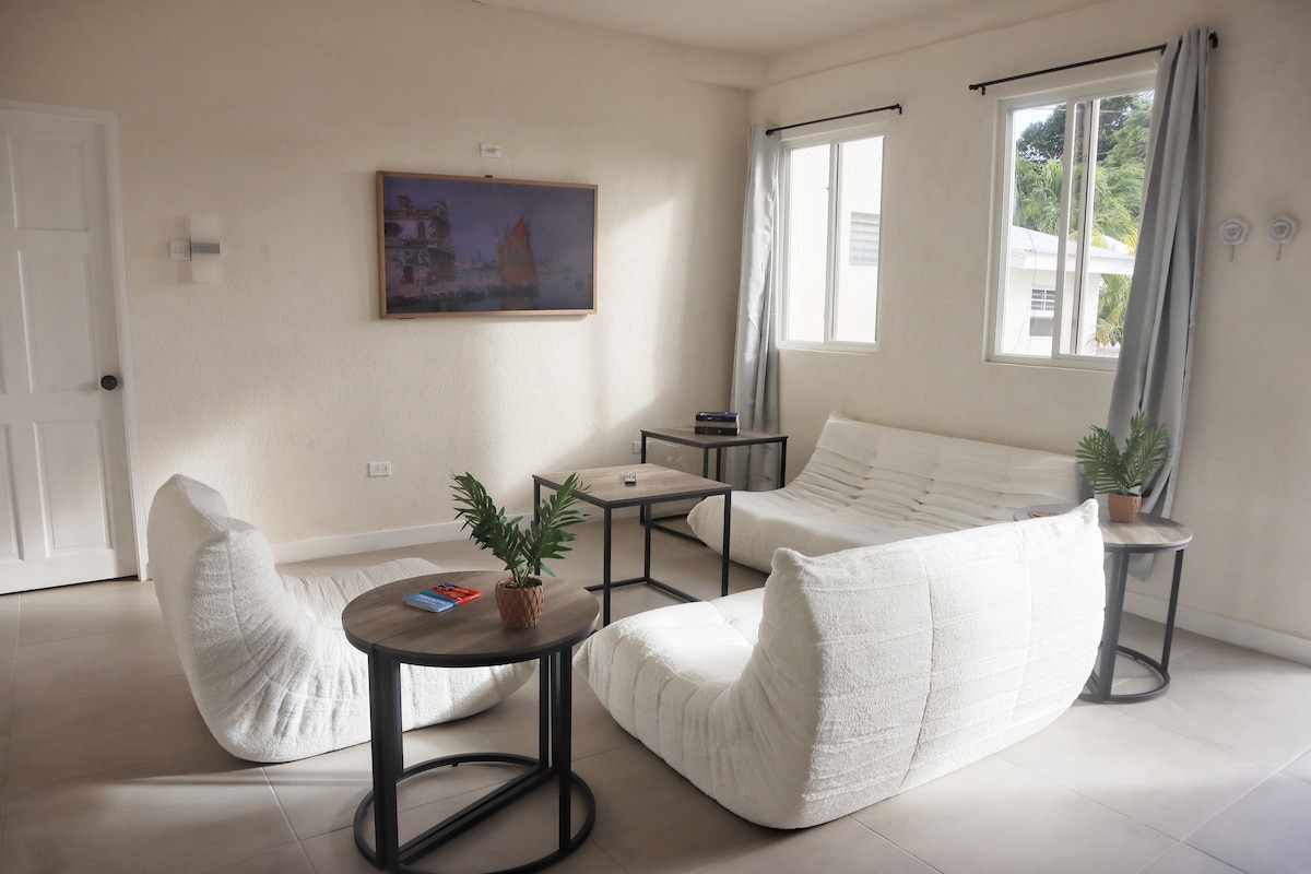Sapphire Beach Condo-114 is a family friendly, stunning duplex condominium located on Dover Beach with direct access to the pool and the beach. Close to DOVER SUPERMARKET (2mins walk) and the renowned ST. LAWRENCE GAP(5mins walk)which boasts over 15 restaurants. The condo features two bedrooms and two bathrooms, one on each level and comes fully furnished with a modern kitchen (including Air fryer)TV, AC, wireless charger, Gym, covered car park and 24-hour security. You will Enjoy the stay100%.