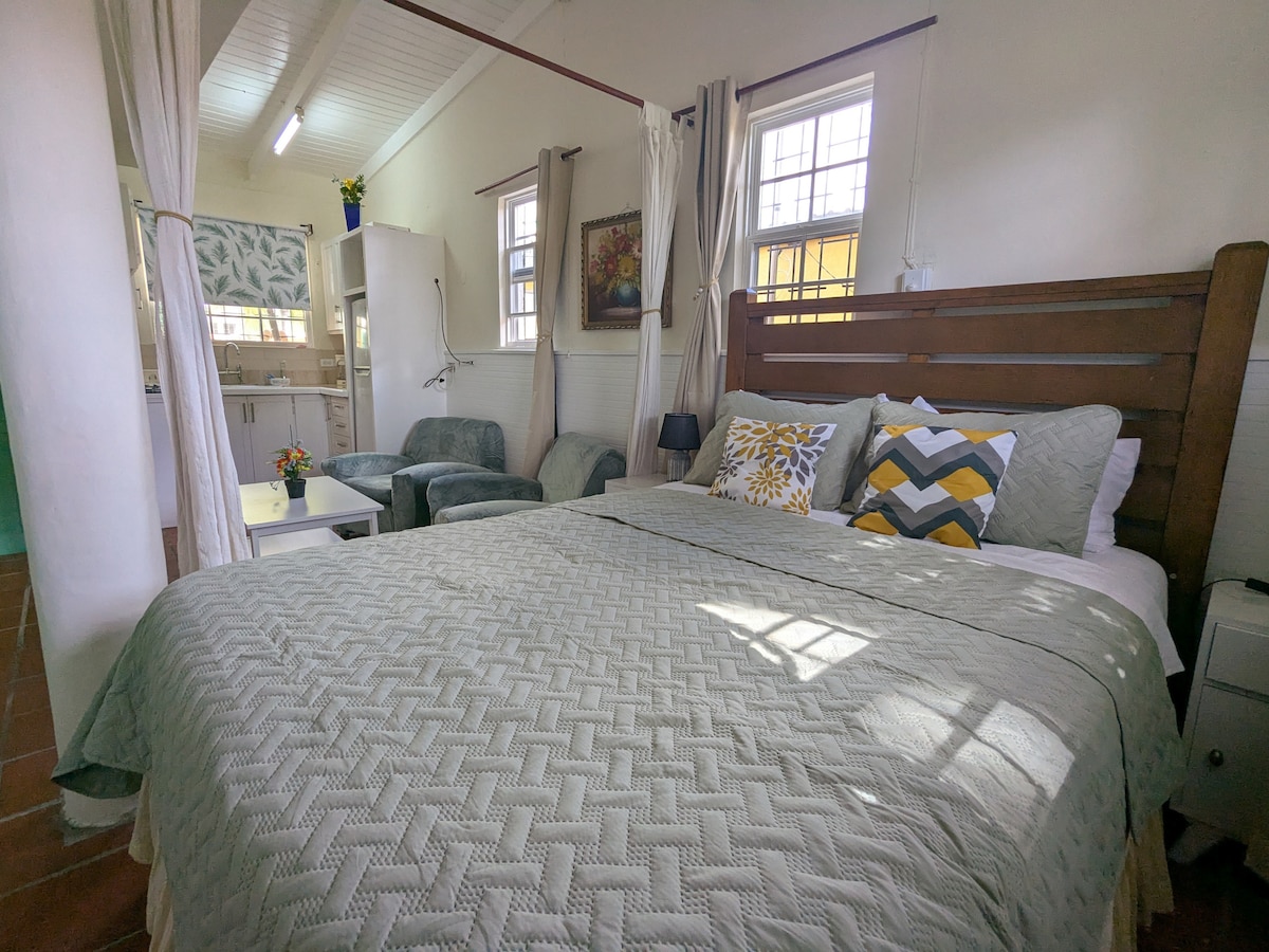 Carmen's cosy Studio is centrally located in the beautiful Parish of Saint Michael. The studio is equipped with a walk-in shower, a queen-sized bed, a desk, AC, a 43" flat-screen TV, and free Wi-Fi. The studio features a mini fridge, kettle, a portable one-burner stove and microwave for your convenience. You'll love the location, which is close to all the amenities, including the US Embassy Banks, cafes, restaurants, supermarkets, and beaches.