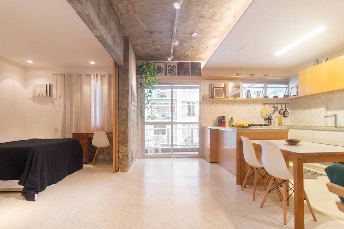 O espaço é um apartamento tipo casa, com estilo rústico, compacto mas bastante confortável e funcional. É arejado, bem iluminado, com um pátio amplo privativo, onde é possível desfrutar do sossego de uma ampla área externa, com uma vista deslumbrante que inclui o Pão de Açúcar e Cristo Redentor. O pátio é um espaço privilegiado para observar a paisagem cultural urbana do Rio de Janeiro e sua forte relação entre homem e natureza.