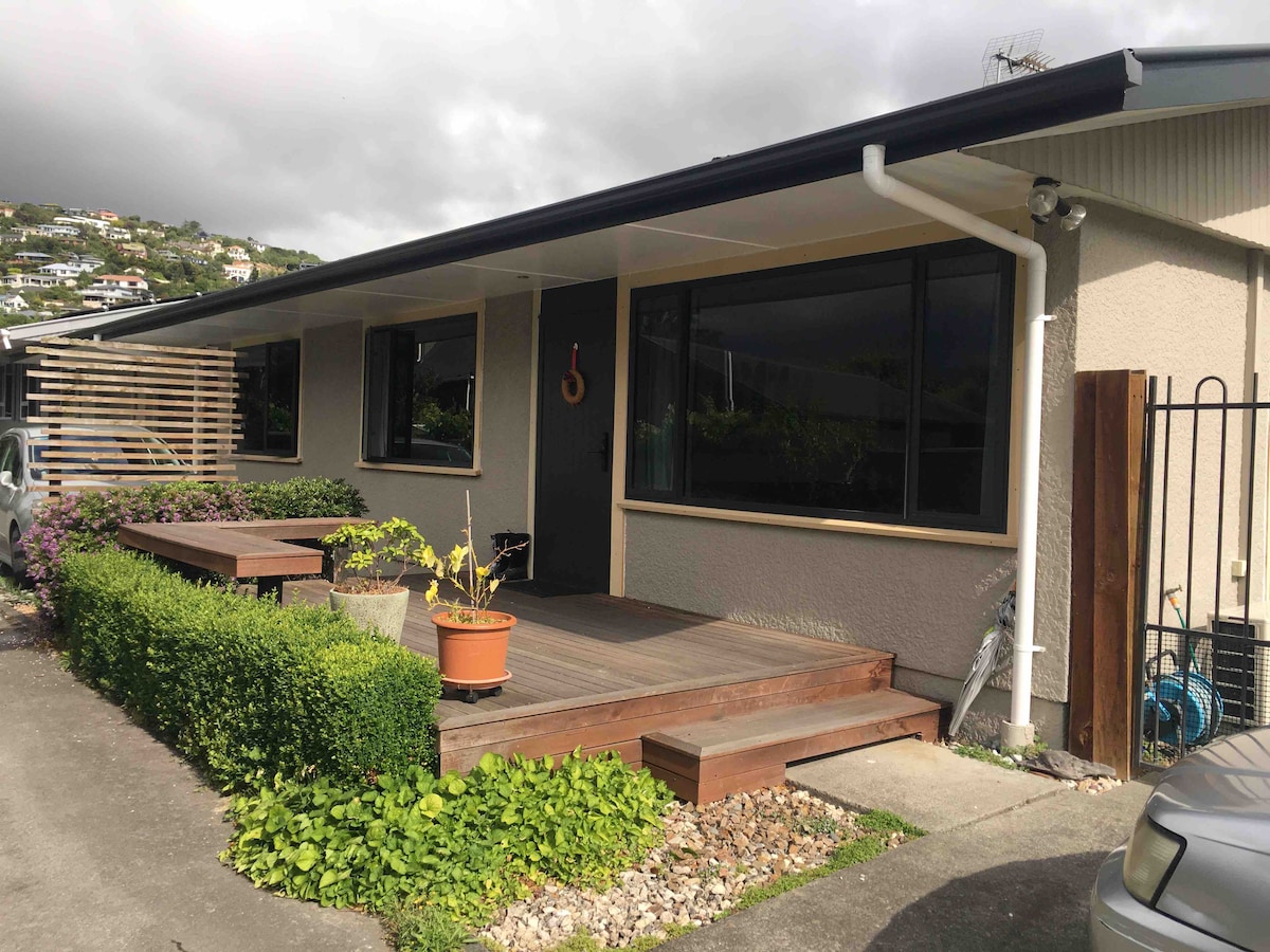 Kick back and relax in this calm, stylish space at the end of a private laneway. Accessed by external steps, the house is split into two pods connected by an external deck. Lofty ceilings and timber walls create a warm bach-like interior with large ceiling fans in each room and a log burner fire. Glass sliders open out to dramatic views of the harbour and hills. Enjoy a drink or BBQ on the large deck or unwind with a hot outdoor bath. Just a 5-minute walk from the local supermarket and brew bar.
