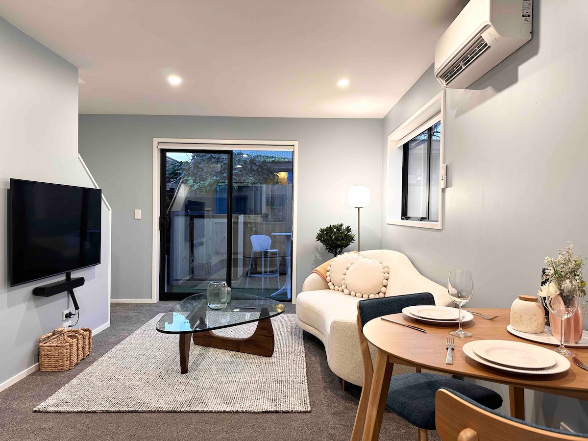 Step into this luxurious clean 1BRM nestled in Christchurch Central. Three minutes walk to supermarket, chemist, cafe and restaurants. Lounge the day away on the sunny balcony or walk around the city. Amazing five star reviews on cleanliness , location and overall stay. Exclusive Gated Free Car Park so no stress trying to find a park or worry about safety. Quiet Street Very clean Warm/cooling air conditioning Fully Equipped Kitchen Ensuite - underfloor heating Smart TV High-speed Wifi