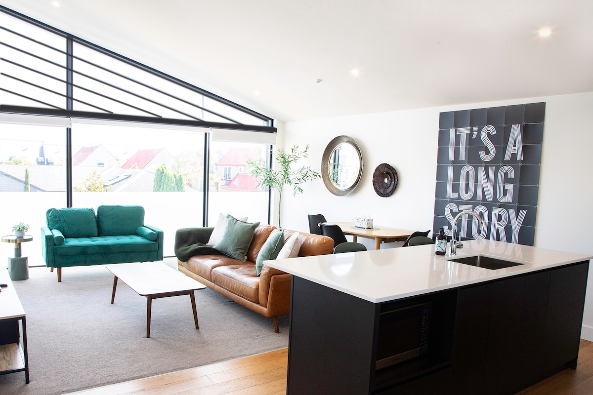 Closest apartment to One Stadium! Have a drink on the deck and then walk across the street to the stadium. Too easy! Luxury ground floor apartment in central Christchurch. This spacious luxe 1 bedroom, 1 bathroom apartment is full of natural light and boasts an outdoor deck with a courtyard outlook. The apartment has everything you will need for your stay, a drink on arrival and pantry essentials. This apartment is as central as it gets. Free car park across the street in a secure building.