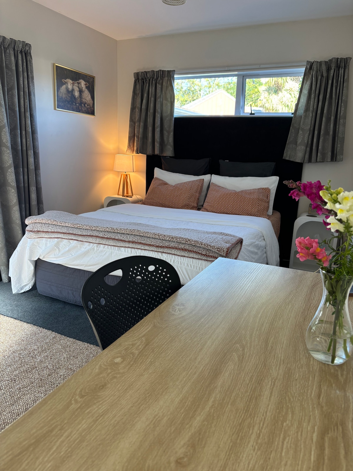 This luxurious, spacious studio offers a contemporary, quiet retreat with a distinctly Kiwi feel. Nestled in a fantastic neighbourhood on our Somerfield property, we are close to the city and the hills so you'll have the best Ōtautahi (Christchurch) has to offer close at hand. The studio boasts a super comfortable King bed, an ensuite with generous shower, built in home office and small lounge area. Outside there is a private deck with outdoor furniture and a spa.