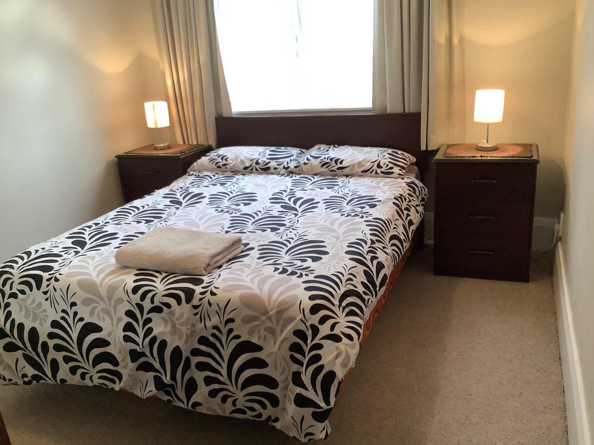 Relax in this self contained, calm, stylish space. Everything you need is provided for a short or long term stay. Fully self contained. Large bedroom with a queen bed and a sofa bed in the living area if needed. It is very quiet and sunny with a deck area for out door dining. Your own bathroom, tea/coffee facilities, and kitchenette. Included work space and generous living/dining area. Very close to airport, university and city centre with local shops and restaurants only a 5 minute walk away.
