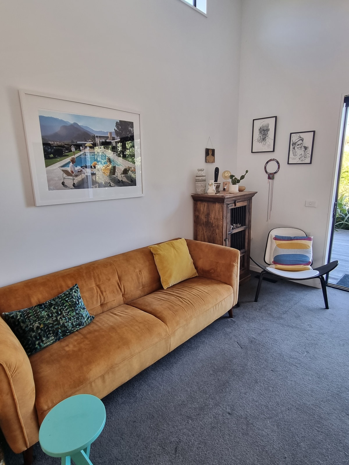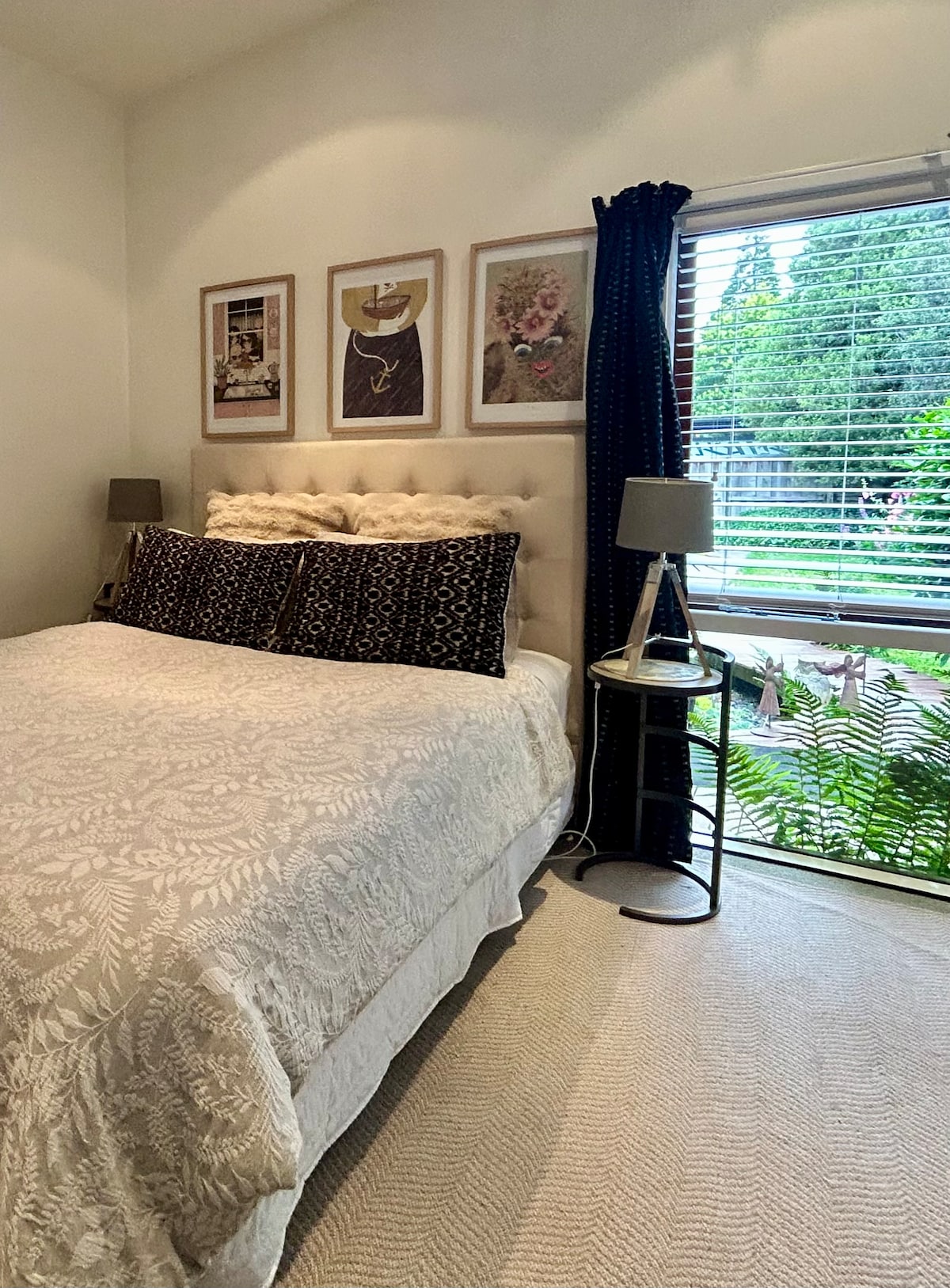 Fun, art filled character home with electric gate offers excellent security and privacy, ideal for families. Designed by Architect Peter Beaven, it has a unique and clever space saving floor plan, angled ceilings and a high internal glass wall between the SEPARATE living room and spacious kitchen •Self checkin •Opposite tree-lined park, playground nearby •Huge selection of toys •City & shopping is an easy drive •Bus stop at gate •Restaurants & convenience store 3 min walk •Airport 3 min by car
