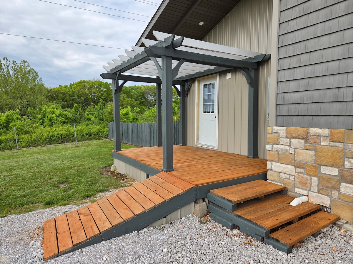 Rustic decor with high end touches. Open floor plan, kitchen is stocked with all essentials needed to cook your favorite meal Eating space at granite island, or in dining area. Quiet, Comfortable bedroom. Large utility with washer and dryer You will love the bathroom with the oversize shower. Enjoy grilling on the large deck. Flat screen TV in the living room and bedroom Gas fireplace in the living room