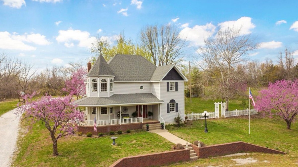 Step back in time with Gatsby-inspired elegance at this charming Victorian farmhouse. Enjoy vintage details with modern comforts. The farm offers open skies, natural beauty, & a slower pace of living—yet just a short drive from local dining, shops, & attractions, including family destination city of Branson, MO. Whether you’re looking for a romantic getaway, unique family stay, or an inspiring setting to unwind, this Victorian farmhouse invites you to experience both elegance & natural beauty