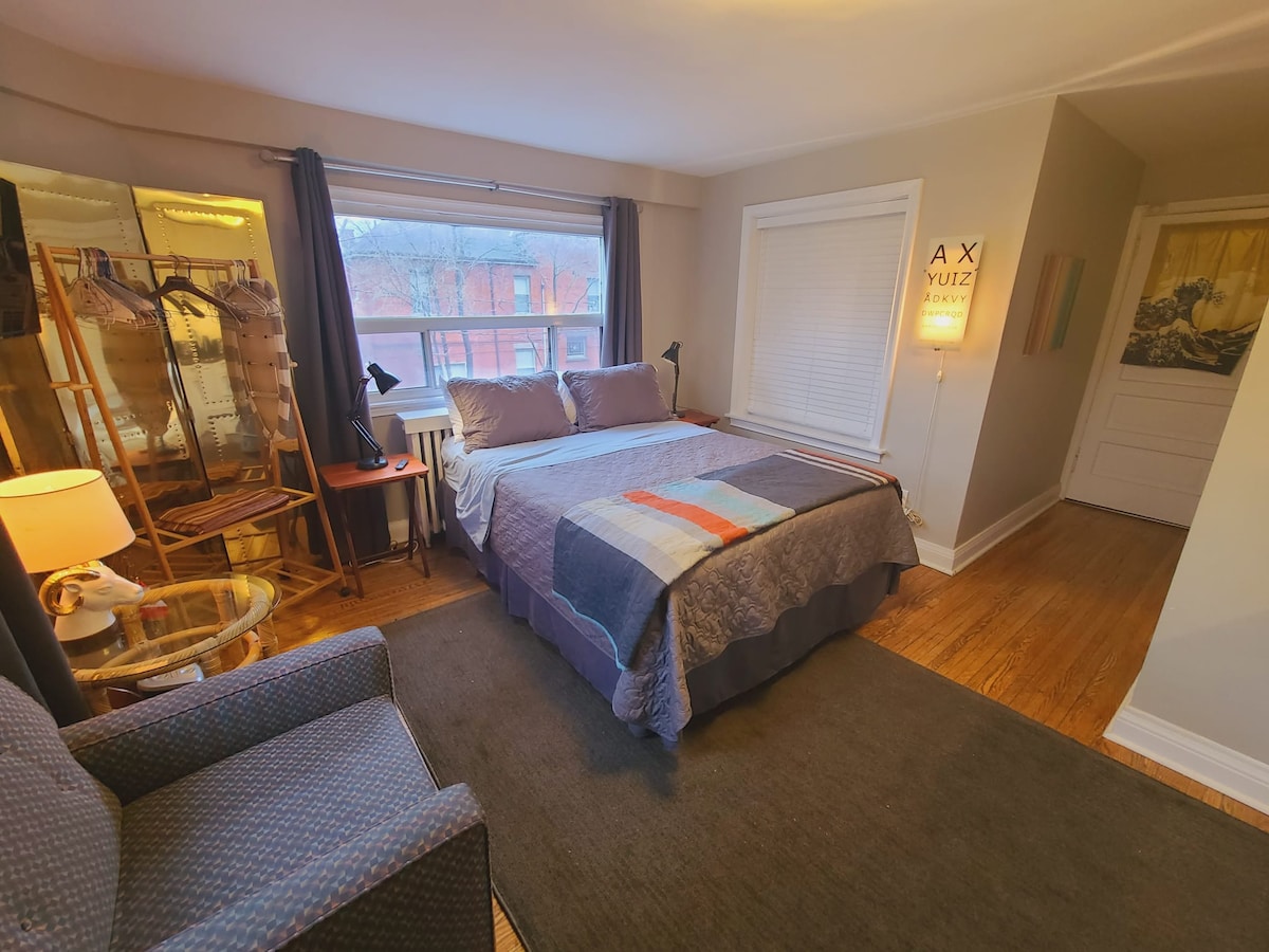 Enjoy a stylish, luxury experience at this centrally located apartment on the main floor of a Victorian home. Walking distance to CasaLoma, Royal Ontario Museum, University of Toronto, Yorkville Village Shopping! Only a 2 minute walk to the TTC. The space Living Room: Smart TV and High-speed internet. Bedroom: Queen-sized bed, large walk-in closet, Smart TV. Kitchen: Fully-stocked to make your extended stay feel like home. Bathroom: Large walk-in shower, Washer dryer unit.
