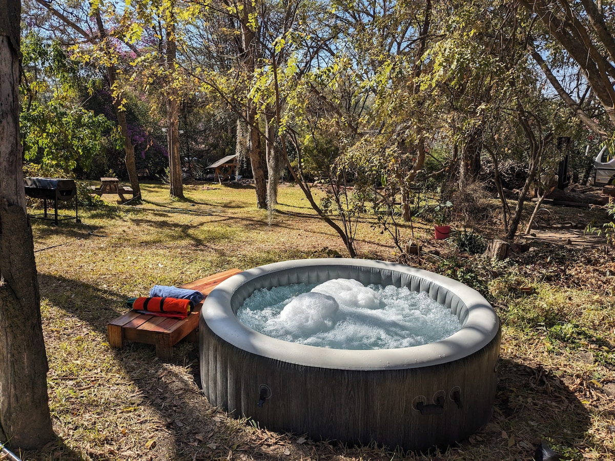 Escape the busy world to this unique and tranquil hilltop getaway, overlooking scenic valley views with orange plantations, wheat fields and Mazowe dam in the distance. Enjoy the landscaped gardens, mountain breeze and peaceful evenings with star lit skies. Equiped with solar and borehole for your comfort and an outdoor patio grill and garden firepit. 5 minute drive downhill to access Mazowe dam if you wish to enjoy other public water activies. Hillview Mazowe - we look forward to hosting you!