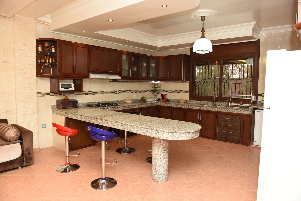 Located in Takate, Agadir, Janane Yaya is an eco-friendly family villa set on a lush 8,000 m² property, offering peace and privacy. It features 4 bedrooms, 4 bathrooms, a fully equipped kitchen, a washing machine, and 3 comfortable living areas. Amenities include a swimming pool, free parking, football and basketball fields, outdoor sound system, fiber-optic Wi-Fi, and a traditional Hammam Beldi.