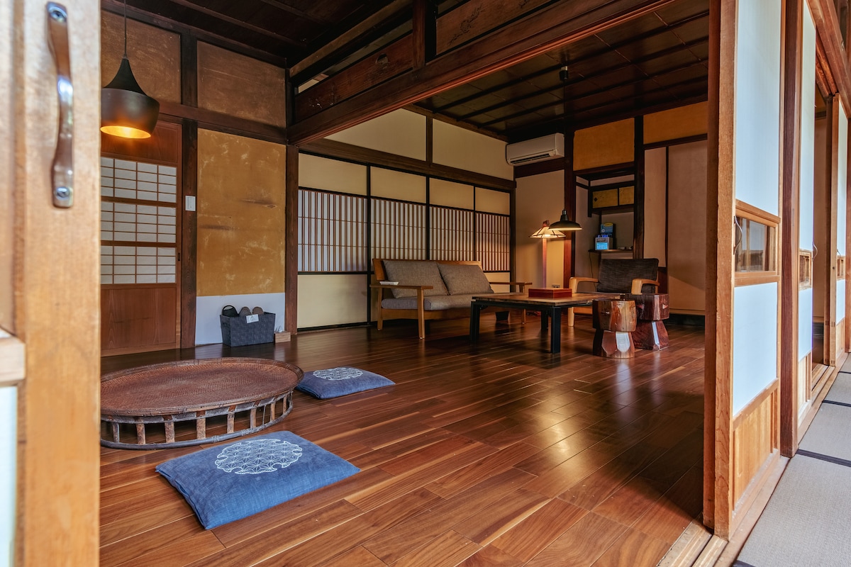 “Maison d’hotes KIRISI MIZU”, is a Irimoya style (traditional Japanese house, similar to Temple) that has been beautifully restored from traditional materials and passed down from my grate-grand parents generation. The entire house is done in a classic style as used to be, except for a newly built kitchen, toilet and bathroom that provide all the necessities of modern life.