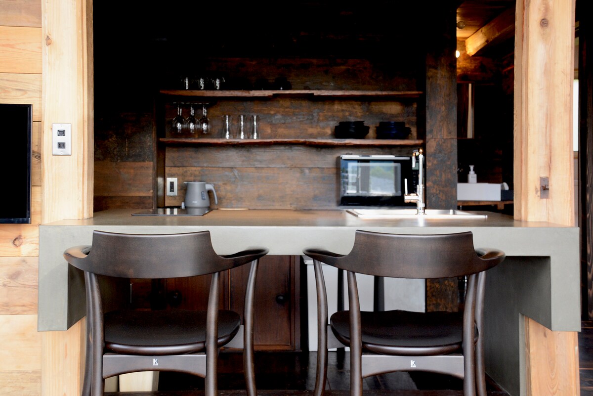 【Main House】 All 3 rooms have a view of Mt. Art house for rent for up to 8 people, 6 people recommended Fully equipped for work stay. 【Irori & spa】 A half-open-air bath with a view of the garden that can accommodate 4 to 5 people at the same time. →Bath using high quality well water from the Yatsugatake Mountains. 【Sauna area】 Russian tent sauna [MORZH MAX] that can accommodate about 8 people. 【BBQ area】 A covered area with plenty of room for about 10 people to BBQ.