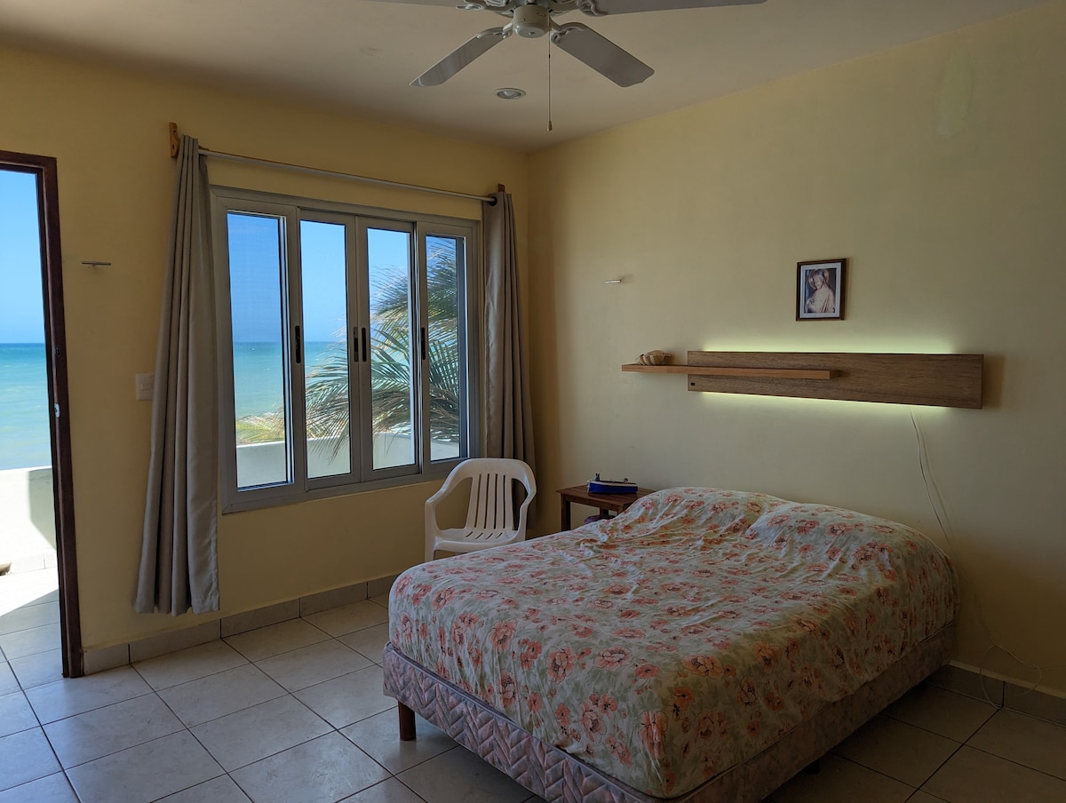 The Vista Del Mar suite is a romantic studio apartment in beautiful Casa Solana Yucatan and has stunning views of the Gulf of Mexico. The studio features a private entry, king bed, ensuite bathroom, full kitchen, free wi-fi and direct access onto the beach.