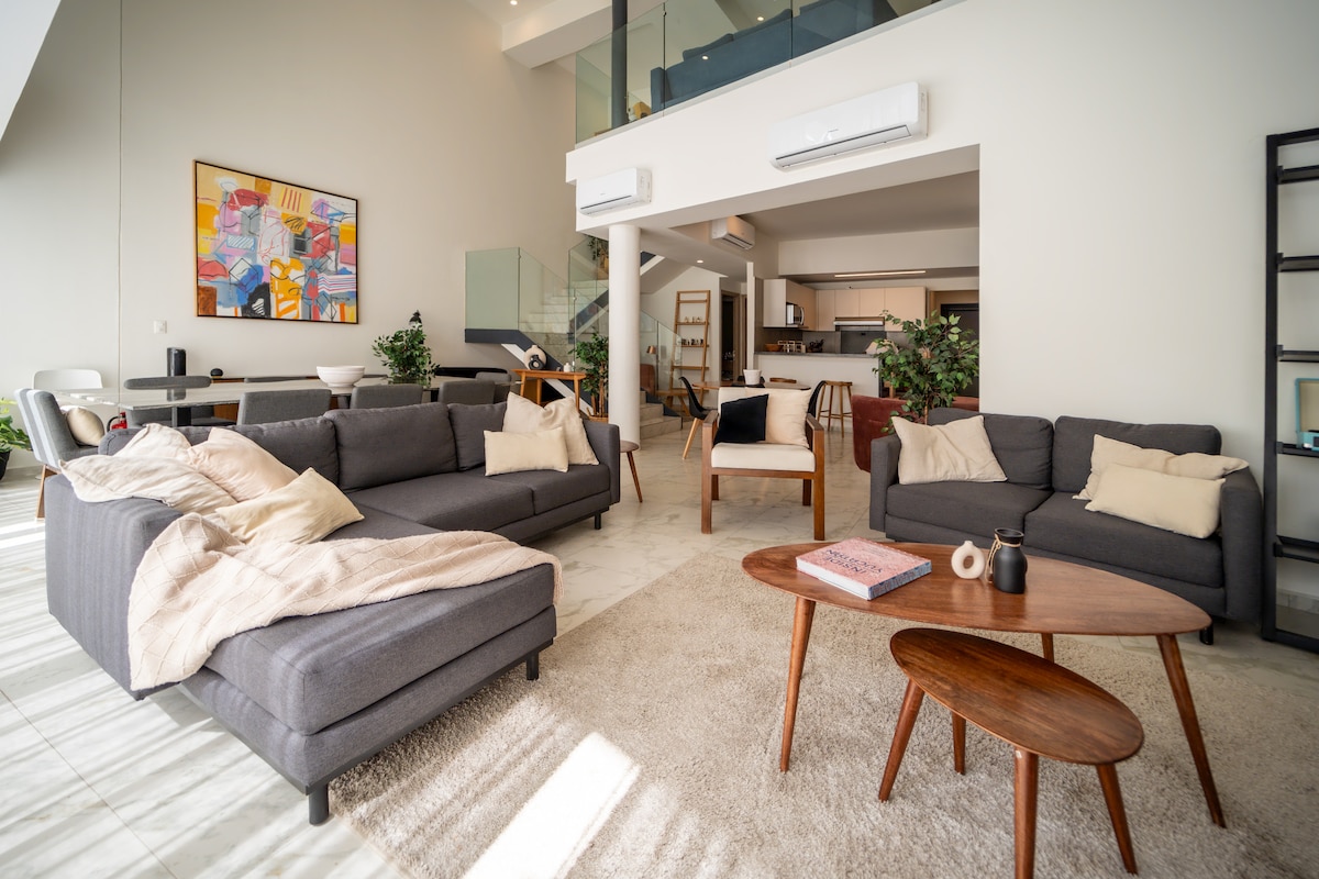 Loft en renta vacacional, ubicado en el piso 17, de Adamat Mérida, acondicionado para disfrutar de su vista desde cualquier ángulo , ya sea el comedor, sala o recámara, al interior del fraccionamiento residencial Cabo Norte donde encontrarás el más importante centro comercial de la ciudad, Plaza La Isla, a escasos 2 minutos caminando, además de lagos senderos para caminar, alberca, gimnasio, yoga room , game room, Sky Lounge, Roof garden y lavandería
