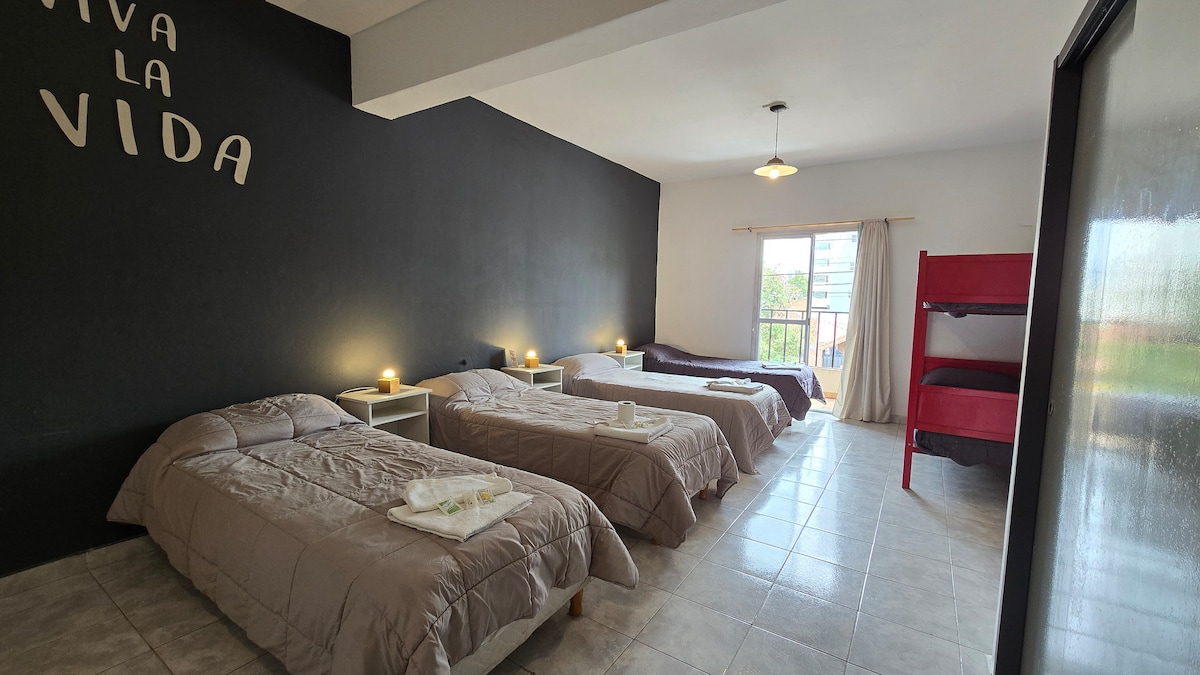 - Incluye desayuno. - La habitación disponible por el momento cuenta con TV led, wifi, ropa de cama, ropero, etc. - Contamos con cochera pero la misma es a disponibilidad. Consultar! - El salón esta disponible las 24hs con TV SMART, sesión de Netflix, microondas, pava eléctrica, dispenser de agua fría/caliente y heladera. - Contamos con una hermosa terraza con parrilla. -Estamos ubicados en zona céntrica y a una cuadra y media del mar.